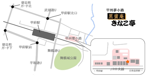 明治、大正、昭和初期の甲府城下町を再現した「甲州夢小路(こうしゅうゆめこうじ)」の一角にございます。