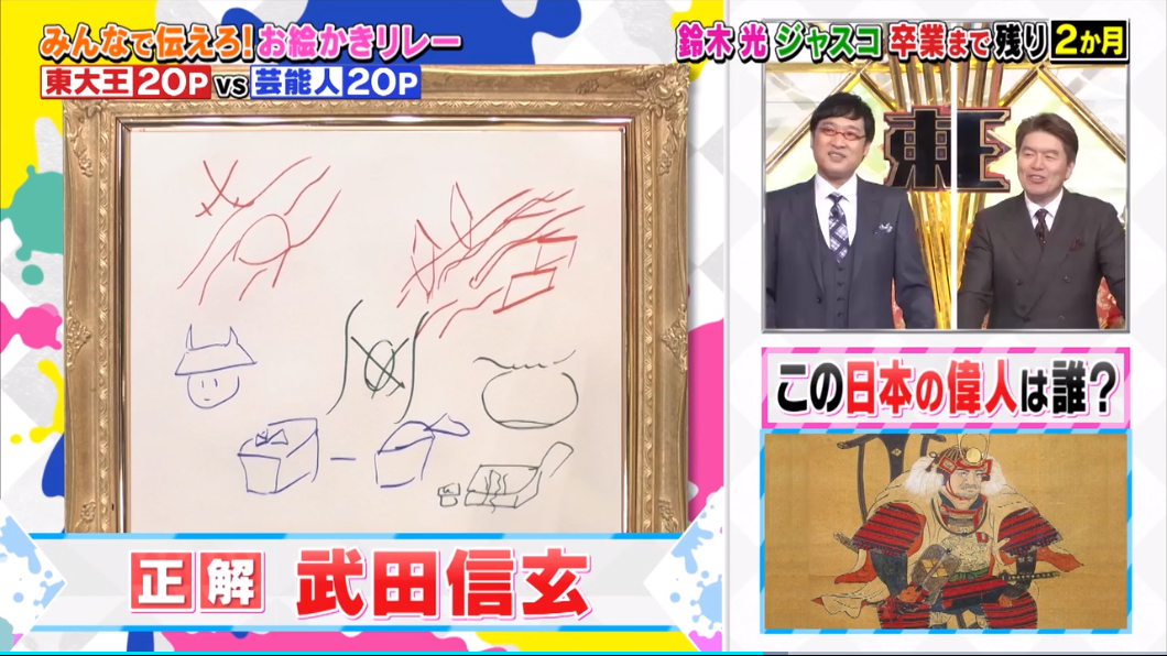 1月27日(水)TBS「東大王」で桔梗信玄餅の画像が使用されました 2021/01/28 1月27日(水)TBS「東大王」のみんなで伝えろ!お絵かきリレーにて、正解を導き出すヒントとして桔梗信玄餅のイラストが描かれ、補足として画像が使用されました。 関連記事 19 【お知らせ】6月17日(火)読売新聞の「お取り寄せの味」に桔梗信玄生プリンが掲載されました。 6月17日(火)読売新聞の「お取り寄せの味」に桔梗信玄生プリンが掲載されました。 2014/06/19 15 【お知らせ】11月18日(日)桔梗信玄餅工場テーマパーク内各店舗の営業時間につきまして お客さまの混雑が予想されますので桔梗信玄餅工場テーマパーク内各店舗の開店時間を下記の通り変更させていただきます。 ・11月18日(日)コンビニは7:30、社員特価販売1/2、一宮店、グリーンアウトレット1/2は8:30オ […] 2018/11/15 28 【お知らせ】工場見学一時休止のお知らせ 国内外での新型コロナウイルスの感染および拡大防止のため、お客様と従業員の安全を考慮し、当面の間工場見学を休止させていただきます。再開日につきましては、感染状況や行政当局からの情報を見極めたうえで検討してまいります。 […] 2020/02/28 この投稿へのコメント コメントはありません。 コメントを残す コメントをキャンセル メールアドレスが公開されることはありません。 * が付いている欄は必須項目ですコメント 名前 * メール * サイト 上に表示された文字を入力してください。 この投稿へのトラックバック トラックバックはありません。 トラックバック URL
