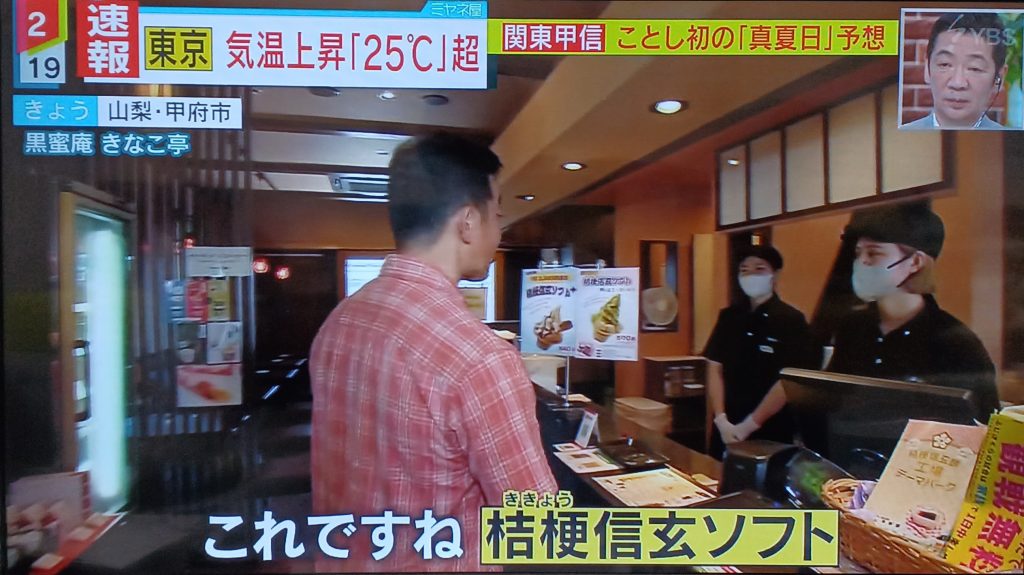 12月23日(金)YBS「ワイドニュース」でJR東日本おみやげグランプリで受賞した「桔梗信玄餅 味くらべ」「『ゆるキャン△』桔梗信玄餅」「桔梗信玄Kuromitsu Black」が紹介されました。 12月23日(金)YBS「ワイドニュース」にて、JR東日本おみやげグランプリで受賞した 「桔梗信玄餅 味くらべ」「『ゆるキャン△』桔梗信玄餅」「桔梗信玄Kuromitsu Black」が 紹介されました。 2022/12/24