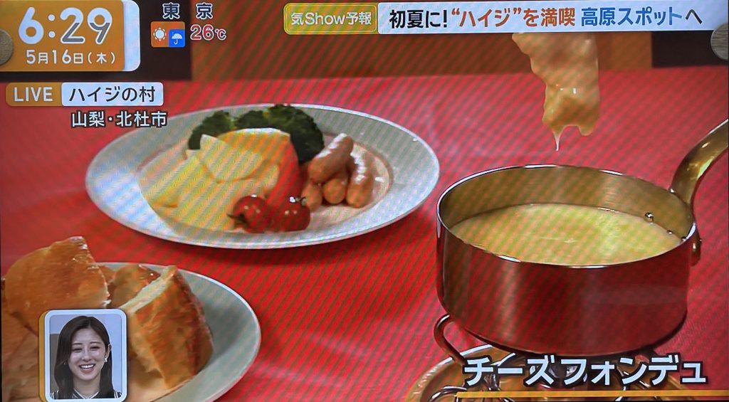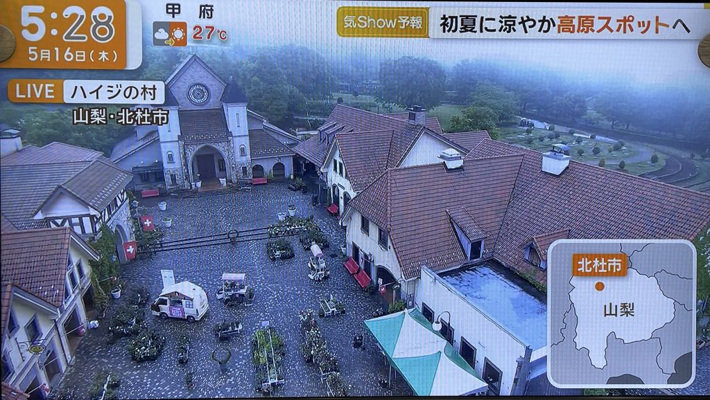 5月16日(木)テレビ朝日「グッド!モーニング」にて、ハイジの村が紹介されました。 2024/05/17 5月16日(木)テレビ朝日「グッド!モーニング」にて、ハイジの村が紹介されました。 関連記事 8月26日(土)BSフジ 「山里・宮野のプライベートお忍び旅」にて桔梗信玄餅工場テーマパークが紹介されました。 8/26放送のBSフジ「山里・宮野のプライベートお忍び旅」にて 桔梗信玄餅工場テーマパークで撮影した様子が紹介されました。 2023/09/09 12月4日(金)テレビ朝日「ザワつく!金曜日」で桔梗信玄生プリンの画像が使用されました 12月4日(金)テレビ朝日「ザワつく!金曜日」のご当地プリン特集にて、桔梗信玄生プリンの画像が使用されました。 2020/12/05 26 【お知らせ】5月25日(土)NHKでハイジの村のジャーマンアイリス祭りの様子が紹介されました。 5月25日(土)NHKでハイジの村のジャーマンアイリス祭りの様子が紹介されました。 2013/05/26 この投稿へのコメント コメントはありません。 コメントを残す コメントをキャンセル メールアドレスが公開されることはありません。 * が付いている欄は必須項目ですコメント 名前 * メール * サイト 上に表示された文字を入力してください。 この投稿へのトラックバック トラックバックはありません。 トラックバック URL