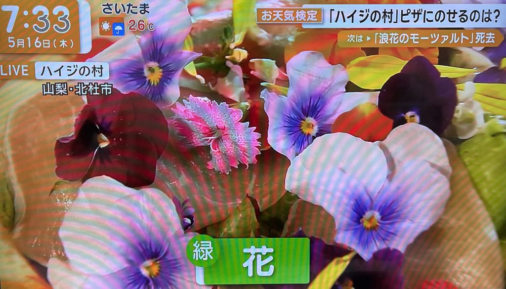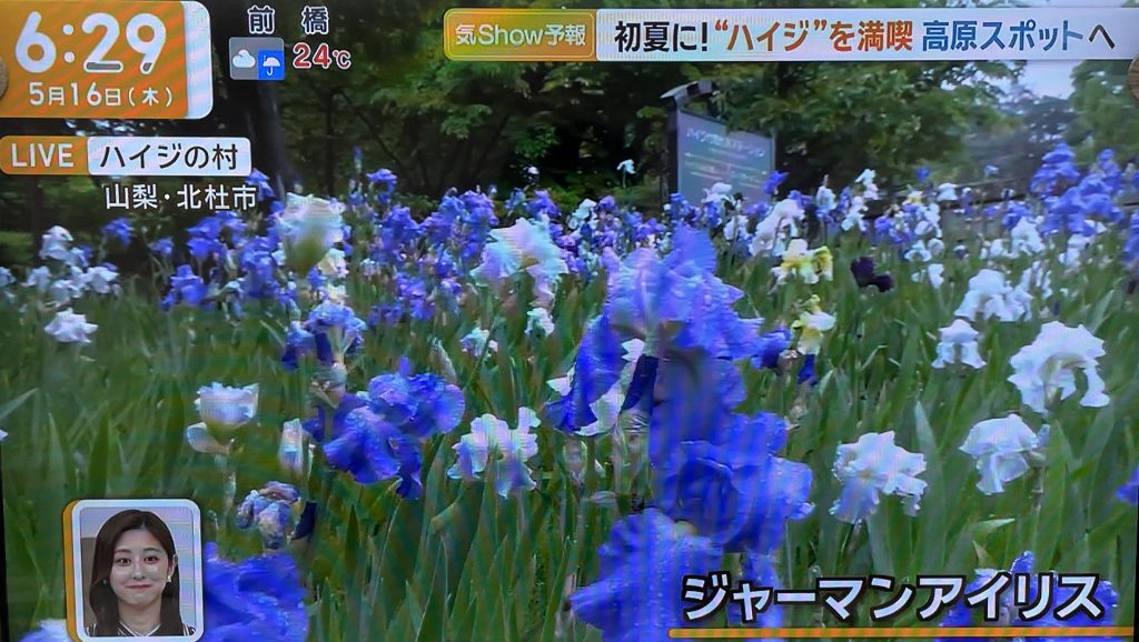 26 【お知らせ】5月25日(土)NHKでハイジの村のジャーマンアイリス祭りの様子が紹介されました。 5月25日(土)NHKでハイジの村のジャーマンアイリス祭りの様子が紹介されました。 2013/05/26