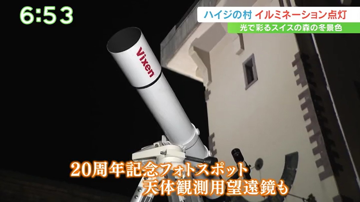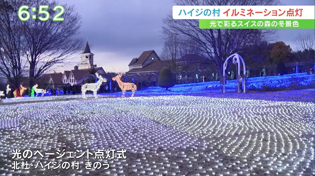 11月19日(水)UTY「スゴろくニュース」にて、「ハイジの村 光のページェント」が紹介されました。 2025/11/20 11月19日(水)UTY「スゴろくニュース」にて、「ハイジの村 光のページェント」が紹介されました。 関連記事 04 11月4日(月)毎日新聞にクララ館にて行った調印式の様子が紹介されました スイスにある「バレンベルク野外博物館」と「ハイジの村」が姉妹提携を結び、11月1日にクララ館にておこなった調印式の様子が毎日新聞にて紹介されました。 2019/11/04 12 8月16日(日)7:00~BS-TBS『名作ドラマ 同窓会の旅「青春とはなんだ!」編』でお菓子の詰め放題がとりあげられます。 8月16日(日)BS-TBS『名作ドラマ 同窓会の旅「青春とはなんだ!」編』でお菓子の詰め放題がとりあげられる予定です。 2015/08/12 29 7月28日(月)日本テレビ「ヒルナンデス」話題のバスツアーin 山梨で長寿村権六が紹介されました。 7月28日(月)日本テレビ「ヒルナンデス」話題のバスツアーin 山梨で長寿村権六が紹介されました。 2014/07/29 この投稿へのコメント コメントはありません。 コメントを残す コメントをキャンセル メールアドレスが公開されることはありません。 * が付いている欄は必須項目ですコメント 名前 * メール * サイト 上に表示された文字を入力してください。 この投稿へのトラックバック トラックバックはありません。 トラックバック URL