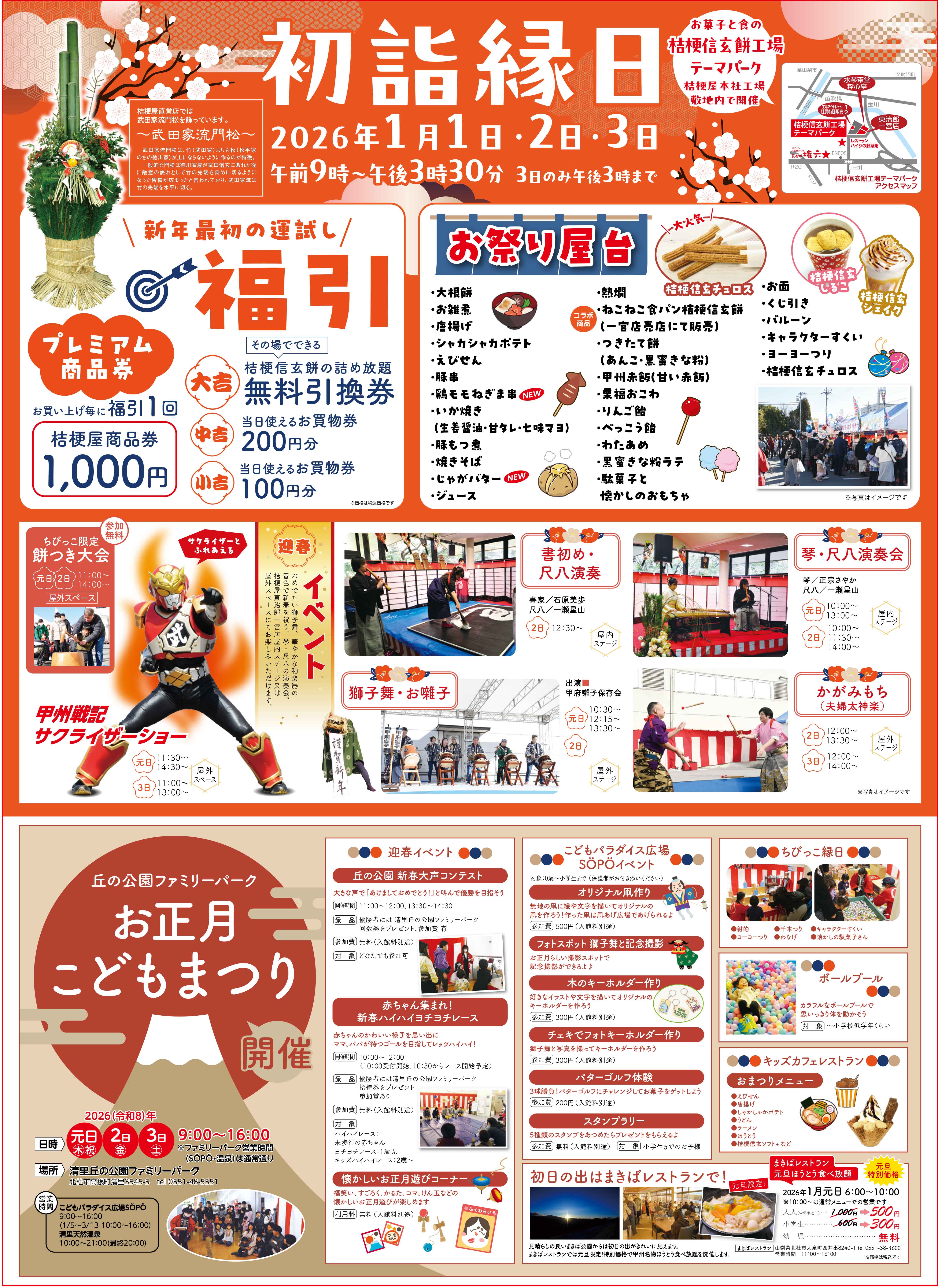 2026年1月1日・2日・3日桔梗信玄餅工場テーマパークにて「初詣縁日」を開催します。