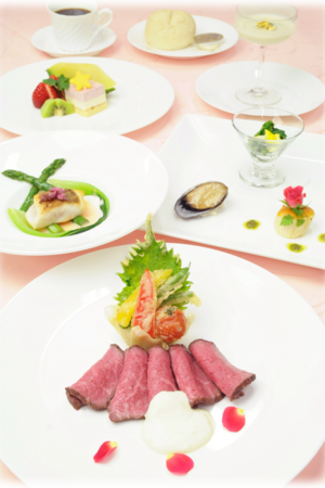 夕食は、ハイジの村調理長がおすすめするフレンチのフルコースでおもてなし。