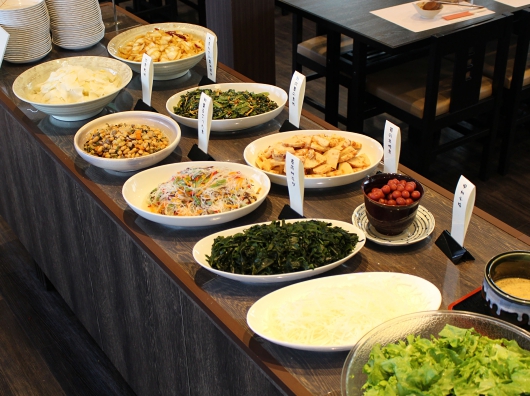 甲州名物煮込みかぼちゃほうとうや、石臼挽きそばなどのメニューを取り揃えています。バイキングコーナーでは、自社農園「ハイジの野菜畑」で育てた野菜を使用したサラダ、煮物、漬物などの田舎料理「俺らん家のおごっそう」がおかわり自由の食べ放題でお楽しみいただけます。