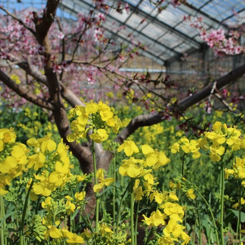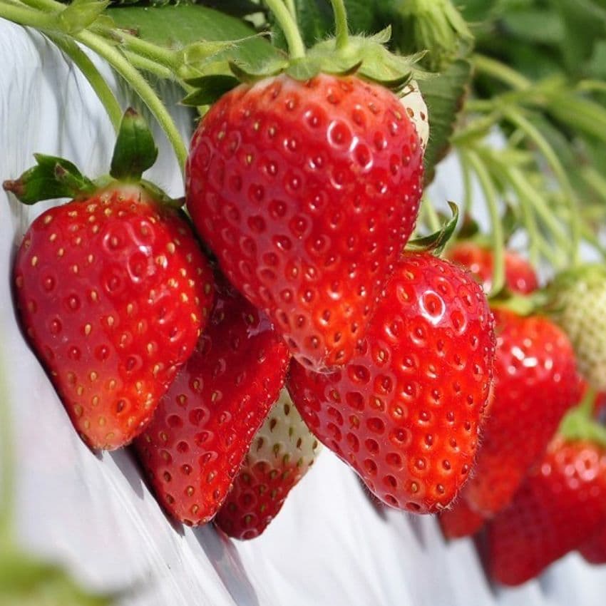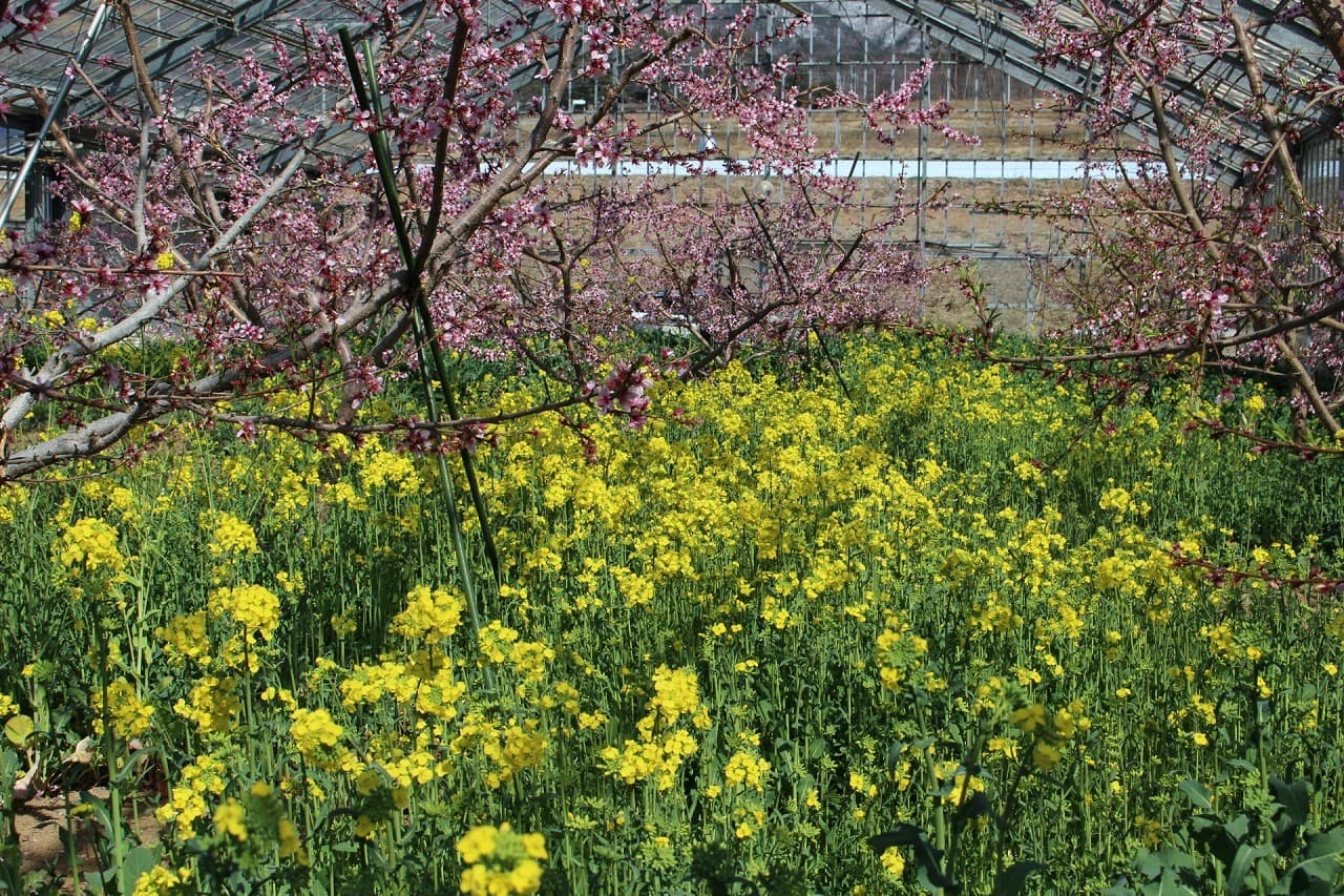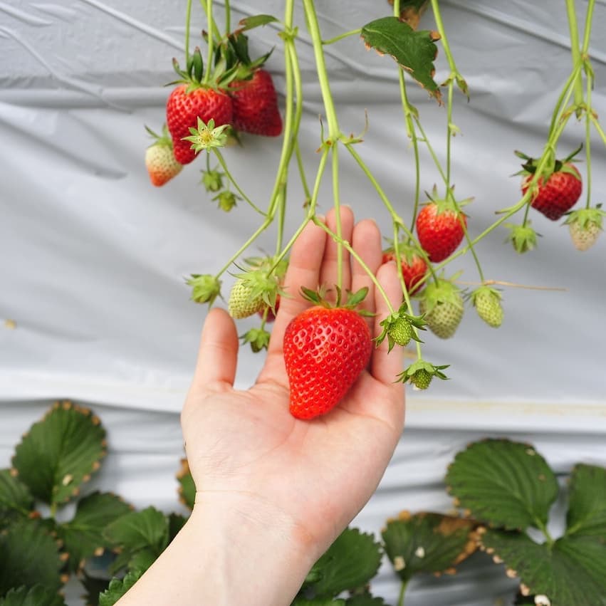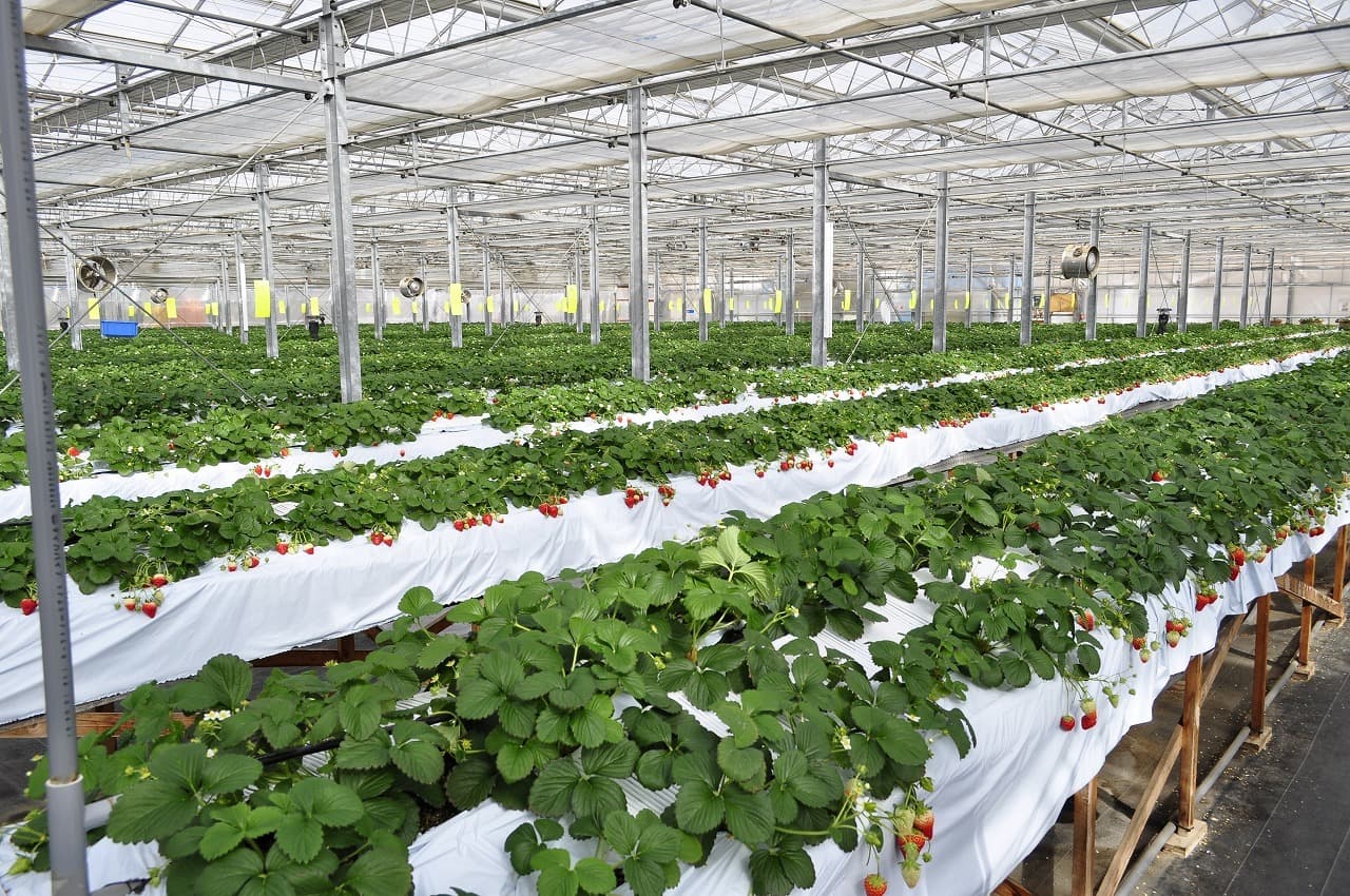 1,200坪のガラス温室の中が水耕栽培施設である明野プラントでは、 様々な品種の苺と珍しい姫小夏という桃の栽培をおこなっています。 明野プラントのある北杜市明野町は日照時間が日本一長いので、 あま~い苺が育つと言われています。