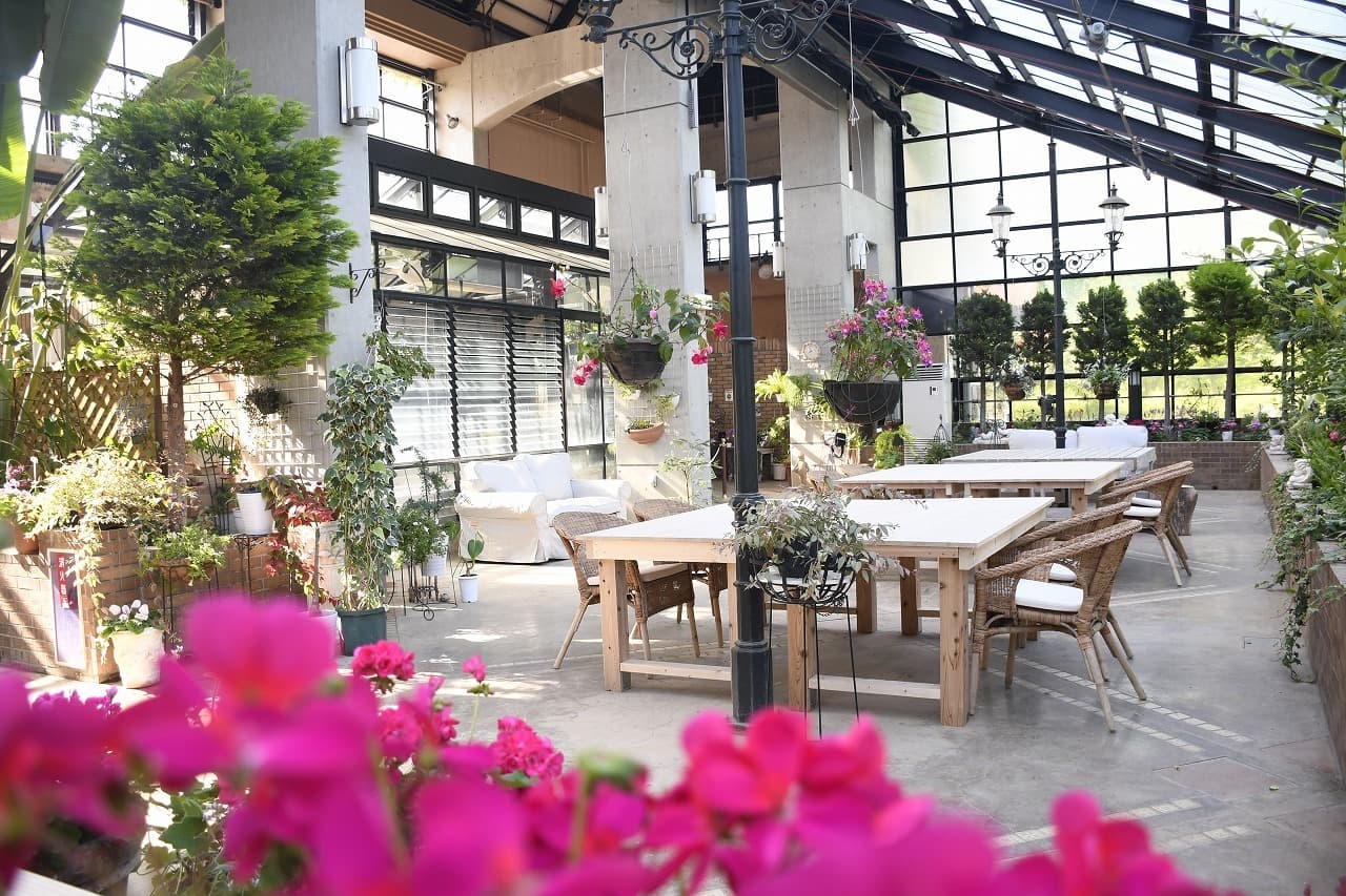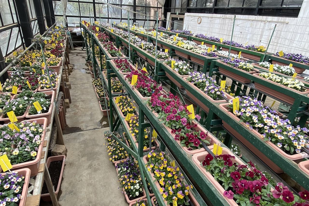 ハイジの村 園内にあるエディブルフラワーの温室では、桔梗屋で製造・販売するお菓子や、レストランで使用するエディブルフラワー(食べられるお花)を栽培しており、実際に見学することもできます。